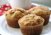 Кексы, приготовленные из сметаны, спелых бананов и шоколадных чипсов.
