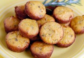 Мини-кексы из кокосовой муки с цедрой лимона, нектаром агавы и свежим розмарином.