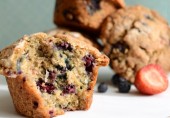 Кексы с черникой, клубникой, ежевикой, кокосовой стружкой и рублеными орехами.