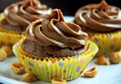Кексы с начинкой из вашего любимого джема или желе, украшенные сладким кремом из арахисового масла.