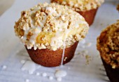 Мини-кексы с лимонной цедрой, посыпанные сладкой крошкой и политые лимонно-сахарной глазурью.