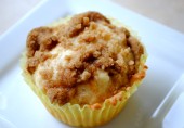 Мини-кексы с персиками, сливочным сыром и миндальным экстрактом, посыпанные рубленым миндалем.