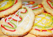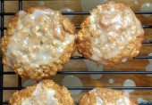 Печенье из овсяных хлопьев на йогурте с коричневым сахаром, лимоном и ванилином, политое сладкой лимонной глазурью.