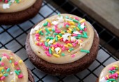 Мягкое и вкусное печенье из шоколадного теста с йогуртом и ванилином, покрытое глазурью с арахисовым маслом.
