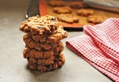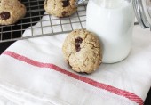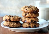 Веганская версия овсяного печенья с льняной мукой, кокосовым маслом, коричневым сахаром и шоколадом.
