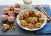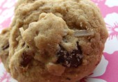 Овсяное печенье с кокосовой стружкой, морковью, изюмом и шоколадом.
