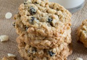 Мягкое печенье из овсяных хлопьев с черникой и белым шоколадом.