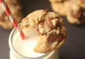 Печенье из овсяных хлопьев с жареным пеканом, ирисками и шоколадными чипсами.