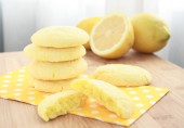 Масляное печенье на сметане с соком и цедрой лимона, обваленное в сахарной пудре. Для насыщенного желтого цвета добавьте в тесто несколько капель пищевого красителя.