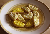 Легкое печенье с цедрой лимона, экстрактами миндаля и лимона, покрытое глазурью.