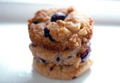 Легкое печенье из миндальной муки с сушеной клюквой, грецкими орехами и шоколадными чипсами.