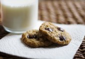 Легкое печенье без муки - из овсяных хлопьев с арахисовым маслом и шоколадными чипсами.