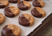 Печенье из теста без муки, покрытое шоколадной глазурью. Можно окунуть печенье в глазурь полностью или наполовину, как в рецепте.