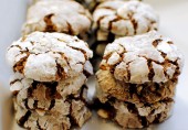 Печенье с лесным орехом, нутеллой и растворимым кофе, покрытое рубленым орехом и сахарной пудрой.