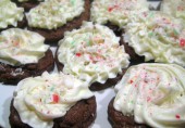 Печенье из шоколадного теста с дроблеными мятными леденцами, шоколадными чипсами, мятным и ванильным экстрактами, покрытое дроблеными мятными конфетами (или посыпанное сахарной пудрой).