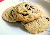 Печенье с замоченным в темном роме изюмом и чипсами из темного шоколада.