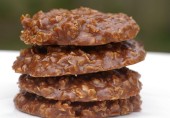 Невыпекаемое печенье из арахисового масла с овсяными хлопьями, молоком, сахаром и ванилином.