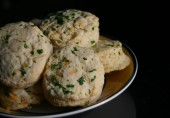 Соленое печенье с тертым чеддером и чесночной солью, смазанное растопленным маслом со свежей петрушкой.