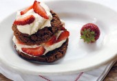 Ванильное печенье со сливками, свежей клубникой и белым шоколадом.