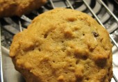 Овсяное печенье с душистым перцем, яблочным соусом, изюмом и рубленым пеканом.