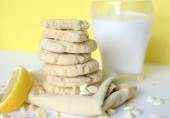 Печенье с лимонным соком и цедрой, сливками и белым шоколадом. Подавайте со стаканом холодного молока.