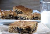 Пирожные блонди с арахисовым маслом и раскрошенным шоколадным печеньем.