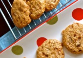 Легкое печенье с овсяными хлопьями, корицей, изюмом и рублеными орехами.