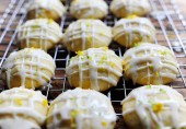 Печенье с цедрой и соком лимона, лайма и апельсина, покрытое сладкой цитрусовой глазурью и посыпанное цедрой.