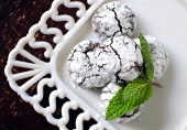 Печенье из шоколадного теста с мятой и ванилином, покрытое сахаром и сахарной пудрой.