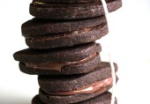 Печенье из песочного теста с кофе и какао, соединенное в сэндвичи нутеллой.