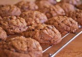 Печенье из цельнозерновой муки с тыквенным пюре, овсяными хлопьями, коричневым сахаром и шоколадом.