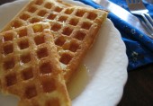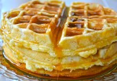 Вафли на пахте, с коричневым сахаром и специями. Подавайте вафли горячими, с кленовым сиропом, взбитыми сливками или сахарной пудрой.