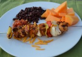 Куриное филе, маринованное в оливковом масле с лаймовым соком и специями и обжаренное на гриле со сладким перцем и луком.