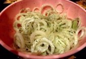 Филе красной рыбы - 500 гРепчатый лук. -1 штЛимон 1/2 штЗелень укропа и петрушки, соль, перец по вкусуРастительное масло - для жарки