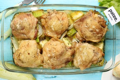 Запеченные куриные бедра с сезонными овощами это прекрасное решение для семейного обеда или ужина. Для приготовления такого блюда можно взять пол курицы, бедра или голени.