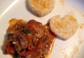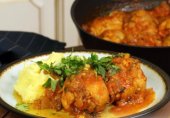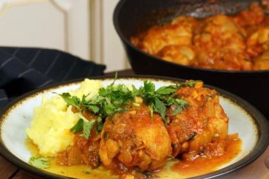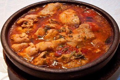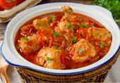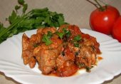 Национальное грузинское блюдо .Кушанье приготавливается из кусочков филептицы, тушёных в томатном соусе, с добавлением специй и чеснока.