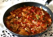Чахохбили это своего рода рагу из курицы. Блюдо готовится из кусочков курицы, тушенные в томатном соусе, с добавлением специй и чеснока.