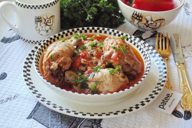 Сегодня готовим чахохбили из куриных голеней. Всем известное грузинское блюдо. Конечно, рецепт чахохбили претерпел множество изменений и дополнений в разных региональных и даже мировых кухнях.