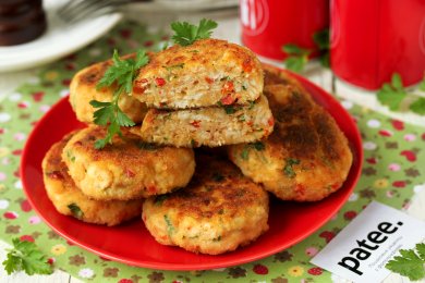 Предлагаю приготовить вкусные и оригинальные котлеты из куриного мяса со сладким красным перцем и измельчённой свежей петрушкой на сковороде.
