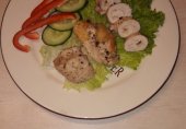 Куриный рулет с мясным фаршем и овощами