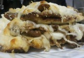 Куриные грудки, обжаренные в масле и запеченные с жареными грибами и тертым сыром.