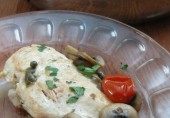 Средиземноморский рецепт куриного филе с грибами, помидорами и каперсами в чесночном соусе.