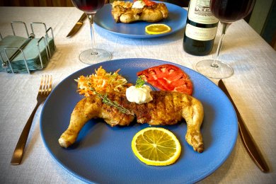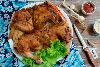 Цыпленок табака(тапака, от названия сковороды, в которой готовят его)- блюдо грузинской кухни, которое в советские времена было самым популярным во всех ресторанах.