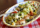 Очень простое блюдо, которым можно угощать даже самых почетных гостей - жареная курица с луком-пореем, яблоками и вялеными помидорами.