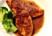 Куриное филе, маринованное в смеси меда с лимонным соком, цедрой и оливковым маслом и обжаренное в масле.