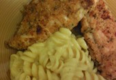 Куриные грудки, покрытые майонезом и смесью сухарей с чесночной солью, паприкой, тимьяном и черным перцем, и обжаренные в духовке.