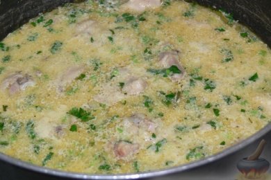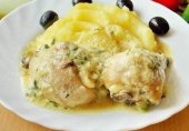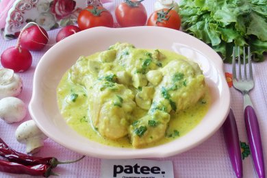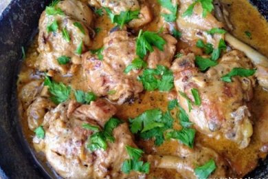 Гедлибже - блюдо кабардино-балкарской кухни. Курица в изумительном соусе из лука и сметаны.