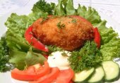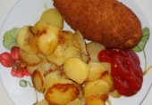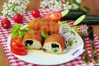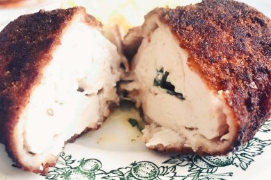 Это вкусное и сытное блюдо состоит из отбитого куриного филе в форме котлеты, внутри которой находится ароматное сливочное масло (чаще всего с укропом).