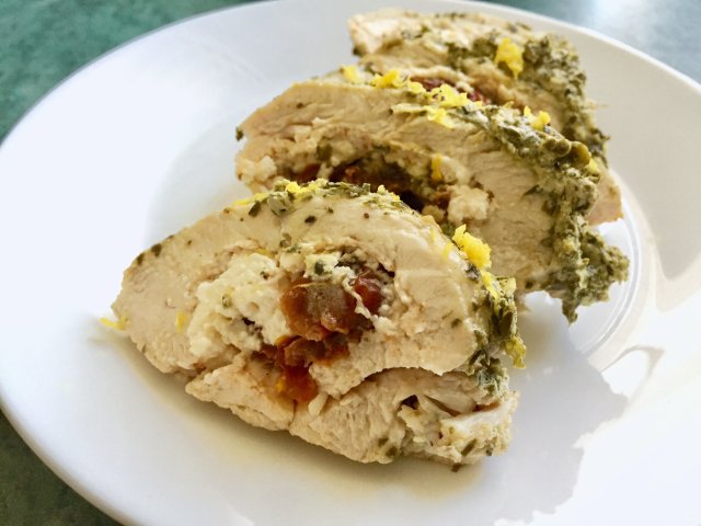 Ещё один беспроигрышный вариант фаршированной грудки! Вяленые томаты, свежая цедра лимона и травы отлично сочетаются и придают пикантную нотку.
