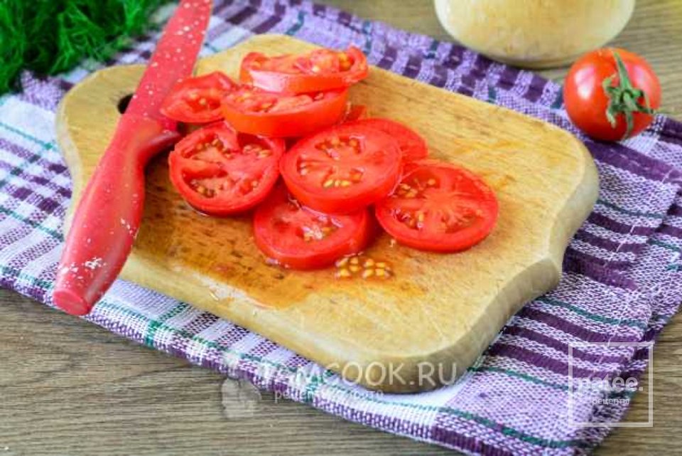 Вымытые помидоры нарежьте средними по толщине колечками.